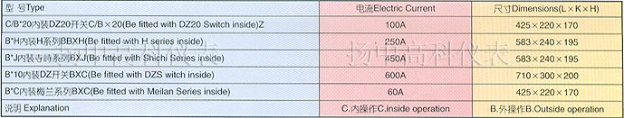 CONNECTION BOX: Used by frequently by the comsumers ,the connection is the main position protected by branch electric current. The box of the company is installed the auto-air swith inside to ensure shunt overloading and short circuit protection.The socket attaches two pieces of 65 Mn spring steel slices ,which guarantees the effctive elastical contact after over 200 times connections.If branch electric current should be increased,you can add sockets in the box and change the switches. |